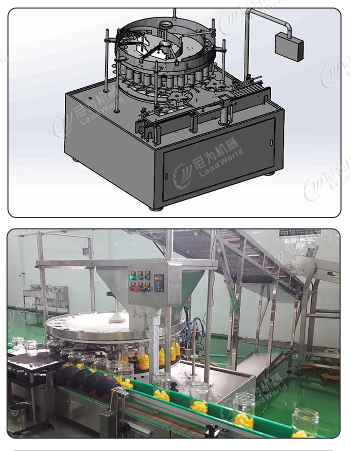 尼為機械丁料灌裝機又名容器式計量灌裝機,主要用于灌裝蔬菜、水果、玉米、豆類等丁料裝罐。