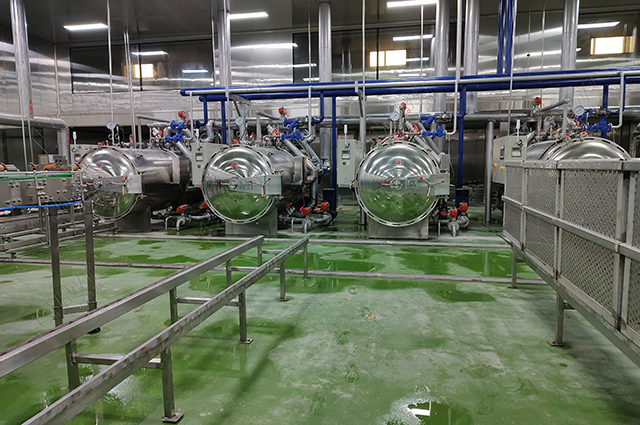 殺菌:在制作午餐肉罐頭時,使用殺菌釜進行高溫殺菌是確保產品安全性和延長保質期的重要步驟。高溫殺菌可以有效地殺滅細菌、病毒和其他微生物,防止罐頭中的食品腐敗和變質。殺菌過程對于確保產品的保質期至關重要。