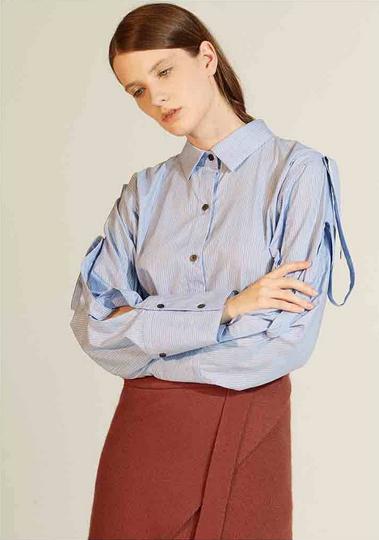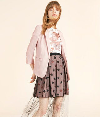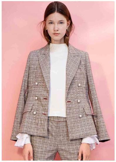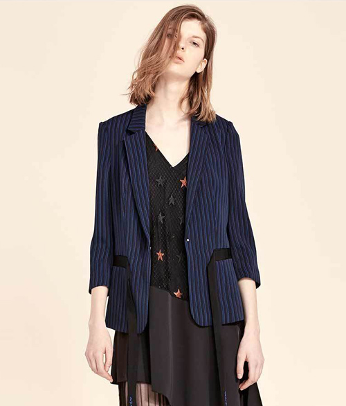 西裝纖細的豎條紋低調不張揚,散發柔和的質感,利落七分袖設計自帶氣場,塑造干練的職場女性范兒