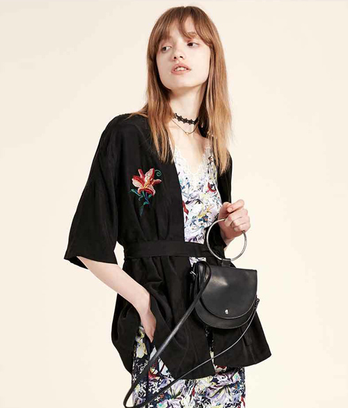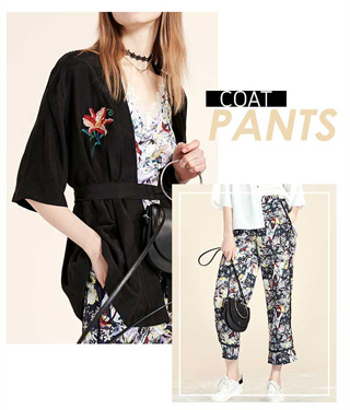 外套用大面積黑色作鋪墊繡花來點綴,十分獨特有型,搭配系腰帶的設計,風情萬種,不管是出游還是通勤都適合穿著