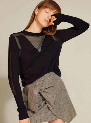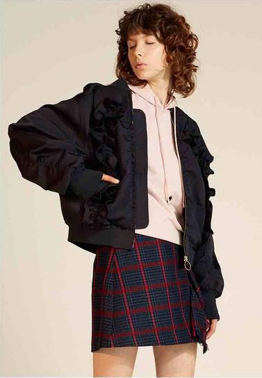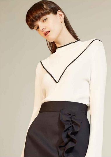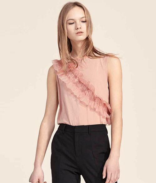 套頭衫荷葉邊給純色背心增色不少,沒有一般世俗的矯揉造作,與率性褲裝搭配,反而有不一樣的帥氣及雷厲風行的感覺
