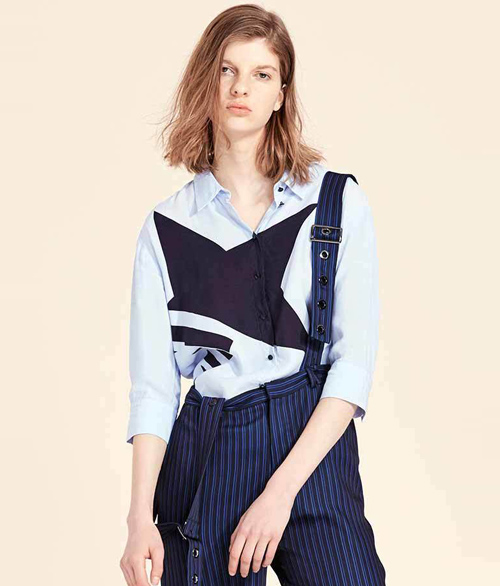 襯衫個性的五角星印花,在一剎那就能抓住你的眼球,時尚而又不夸張,搭配粘纖的面料,夏日穿著舒適有型